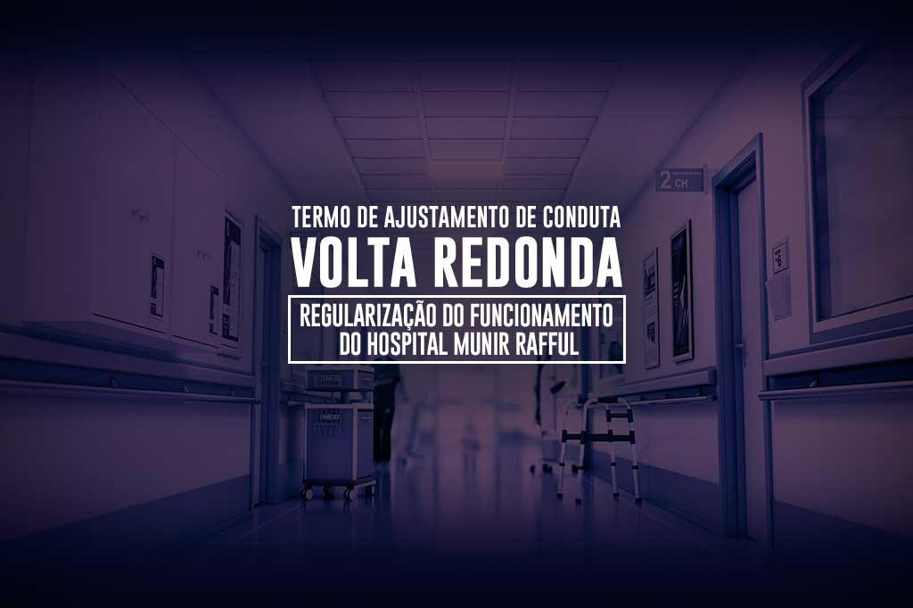 O Ministério Público do Estado do Rio de Janeiro (MPRJ), por meio da 3ª promotoria de Justiça de Tutela Coletiva de Volta Redonda, a Defensoria Pública do Estado (DPRJ), por meio do 2º Núcleo Regional de Tutela Coletiva e o Município de Volta Redonda firmaram, nesta terça-feira (08/12), um Termo de Ajustamento de Conduta (TAC) para a regularização do funcionamento do Hospital Munir Rafful, em Volta Redonda.
