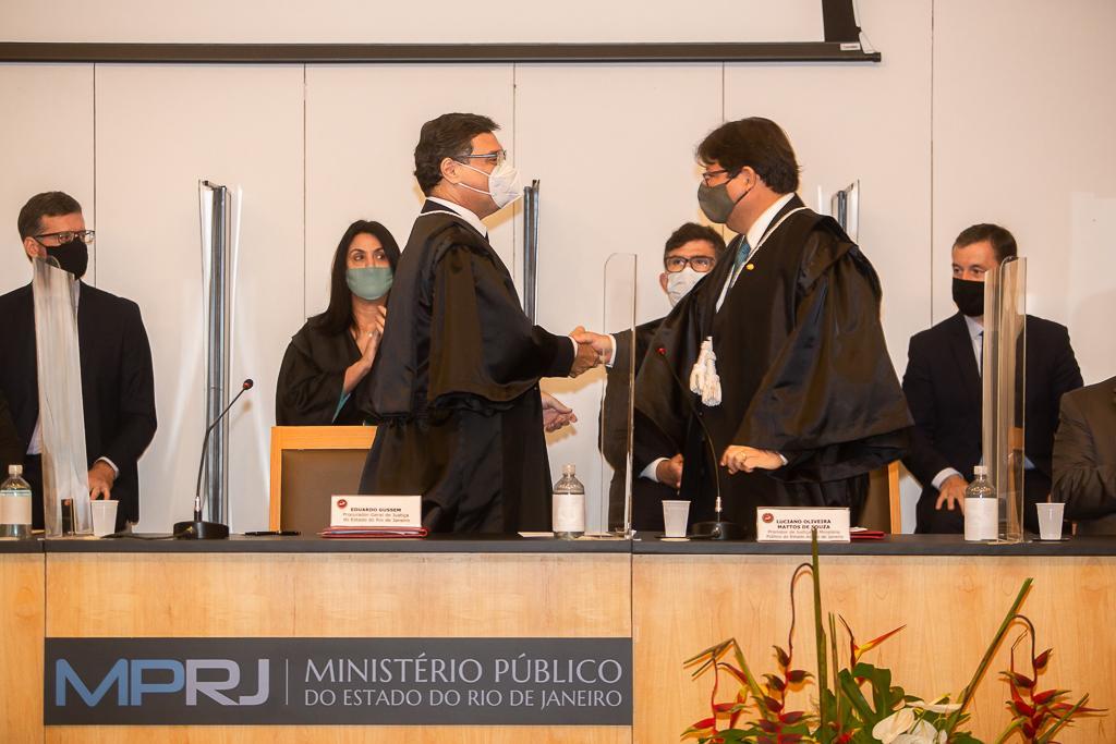 O promotor de Justiça Luciano Mattos tomou posse nesta sexta-feira (15/01) como o novo procurador-geral de Justiça do Ministério Público do Estado do Rio de Janeiro (MPRJ), para o biênio 2021/23. A cerimônia foi realizada no auditório do prédio-sede da instituição de maneira semipresencial, devido aos cuidados adotados para evitar a propagação do novo coronavírus. Luciano, que foi o candidato mais votado na eleição destinada à formação da lista tríplice para provimento do cargo de PGJ, obtendo um total de 546 votos (31,92% do total), foi nomeado pelo governador em exercício, Cláudio Castro, em edição extra do Diário Oficial publicada no último dia 6 de janeiro.